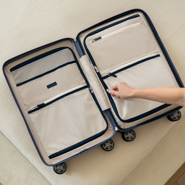 External USB port with dedicated power bank pocket meets FAA regulations for carry-on and checked baggage. *Power bank not included. (Only featured on Carry-on models).